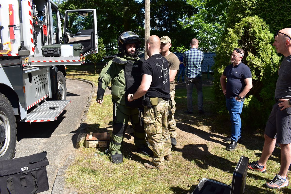 Dodatkowo uczestnicy szkolenia mogli w praktyce zapoznać się ze sprzętem stanowiącym wyposażenie specjalistycznego pojazdu do przewozu ładunków wybuchowych przeznaczonego dla policyjnych pirotechników. Ćwiczenia cieszyły się dużym zainteresowaniem, a zdobyte podczas nich doświadczenie z pewnością zostanie wykorzystane w praktyce przez jego uczestników.